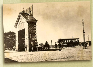 Arco da Conceição, no Recife. Localizado entre o Cais da Alfândega e o Cais do Apolo, foi demolido em 1913 para alargamento das ruas para o trânsito de bondes e automóveis.